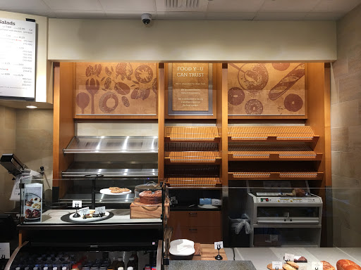 very disappointing panera experience. When I first walked in the restaurant, the rude cashier directed us to use the kiosk. The kiosk was very difficult to use. The food was below panera standards. The cream of chicken and wild rice was as thick as Campbells soup and there were numerous hairs on my turkey bravo sandwich. Avoid this panera at all costs.