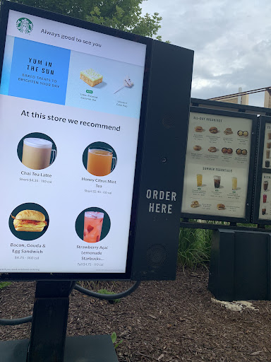 Typical Starbucks but with very friendly baristas, a drive thru and a convenient location.