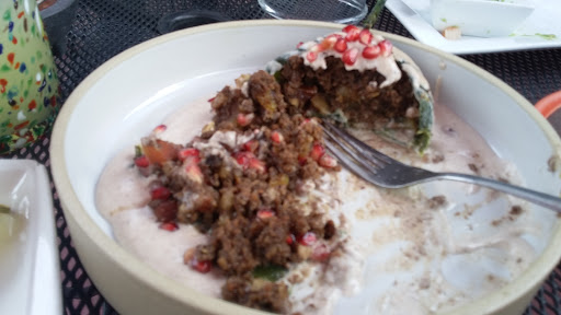 Oh my God!... ;) The owner comes to each table and describes the specialty dishes for the evening, and says after each description "Oh my God!" It really is fantastic gourmet, Latin-based food. Lots of twists on Mexican classics, too. They have a small outdoor patio in the back. Nice place, and definitely worth a visit or two or three...