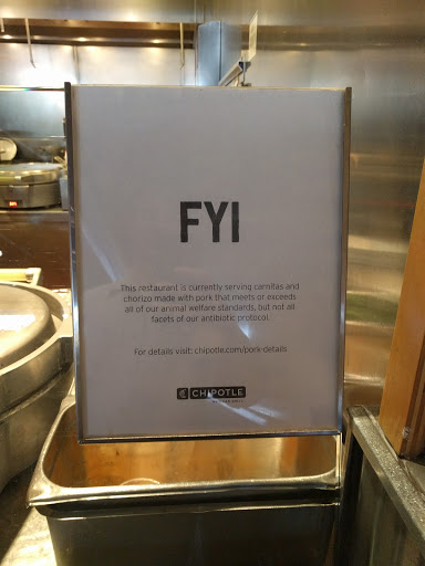 Chipotle is always tasty! If youve never tried the Softitas, you should. Its well-seasoned and cooked tofu. Im not a vegetarian (or anything close to it), but I always get the Sofritas. This particular location always serves smaller portions than others Ive been to. That being said, I always have extras, even at this location.
