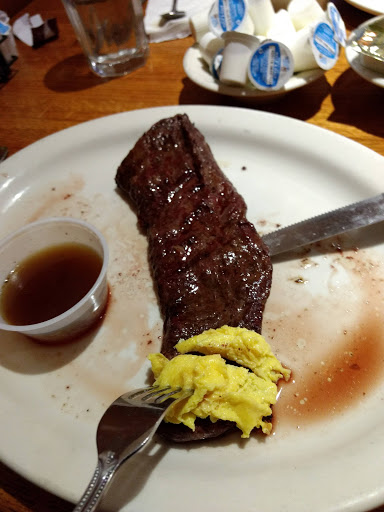 Wasnt too busy, food came out quickly, and they werent skimpy on the portions. The meat lovers skillet had tons of meat and they even nailed the over-medium eggs! Nice!