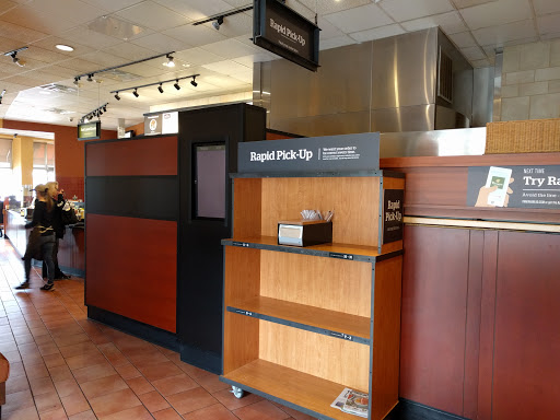 This is one of the busiest Panera Bread locations I have ever seen and I was surprised to see such clean bathrooms. The staff was also super nice and the sandwiches seemed more full and tastier than all the other Panera Breads I have been at. Nice area also with 2 Starbucks within walking distance, a Whole Foods and Trader Joes and a whole bunch of other restaurants in between. Great upscale town and sidewalk environment.