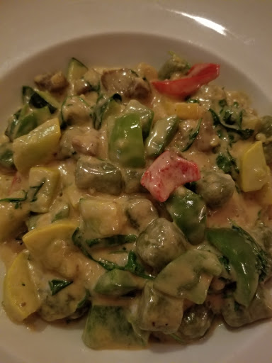 I ate dinner here as a part of a company dinner event. The food was excellent! We had a multiple course meal that started with and excellent thin crust pizza. We then enjoyed two types of pasta - chicken or beef, both of which were very very good. We then had a salad. My entree was a steak, which was okay. The gellati dessert was very good as well. The service was quite slow and it took a long time to get our drinks. When the servers were around they were quite attentive. There was a magician that did close up magic - he was very good and very funny. This was a great experience that would have been phenomenal with a bit better service.
