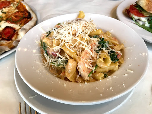 Nice atmosphere in this restaurant (feels upscale Italian). Service was great. We had mixed reviews on the food though. I tried the seafood risotto; it was good/decent, but I dont think Id order it again (just nothing special about it). I actually loved the house salad; it was far better than the risotto, and the appetizers we tried were great. The menu was full of great options and if be happy to come back and try new items.