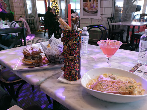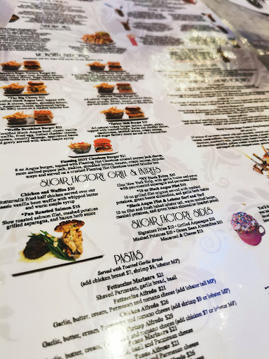 Very bad service! Ok so yesterday my Fiance took me on a date for our 2nd year anniversary and well he thought Sugar Factory would be the best option since we were there a year and a half ago when it opened and everything was outstanding! (menu was super small and simple before) When we got there last night, we asked for our table since we reserved ahead of time. Only to find out we got the corner table by the AC with very small space to move. No, this was not the booth table this was a basic table with chairs. I didnt mind it at first but then as the AC was blowing I felt the water splashing on my face and this was a portable AC blasting on my back. So I let that one go and started to focus on what I was going to order. We ordered our drink which it took about 5 min or less to get there which was pretty quick. However, we ordered our appetizer right after we got our drink and it took about 20 minutes to arrive and we didnt even get plates to eat our appetizer. We ordered the onion rings which didnt have anything special about it. By the time I was able to ask our waitress to get plates for the appetizer, our food got to our table. So our onion rings were getting cold and our food wasnt the best. My Fiance ordered the Chicken Marsala and it was not the best. He said the best part of the dish was the mushrooms. The sauce on the pasta had not taste and the chicken wasnt so great. I had the Buffalo Chicken Tender Sandwich, I loved the chicken but not the sauce they used on the sandwich. The fries are amazing though! We still wanted to get dessert since the first time we were there we tried the cookies and cream ice cream and it was delicious. But our waitress did not show up to our table til about 45 minutes after we finished our food. So instead we asked for the bill. And another 20 minutes passed before she came around and you get the story. Pretty much I felt like we were the abandoned corner table. I also saw another table a group of 3 ladies that were very dissatisfied with service. If I go back, it would only be for drinks. The food is not all that great. I hope this review helps out people. This review comes from a waitress to another waitress. I know how the restaurant industry works. I was not going to be mean and not give the lady her 15%. I am sure if you read this review and see my face you will remember who I am.