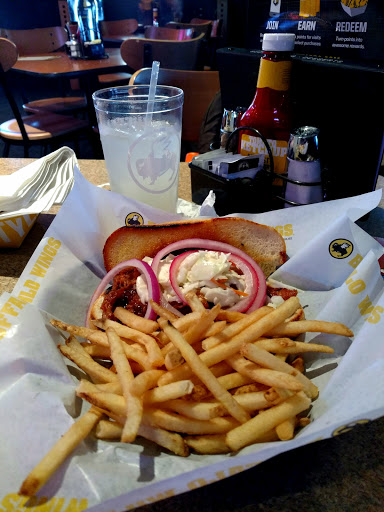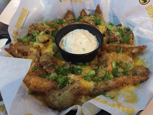 The food is typical for a buffalo wild wings. Good place for groups and the servers all seem to be quite attentive. Great place to watch sports on the many screens.