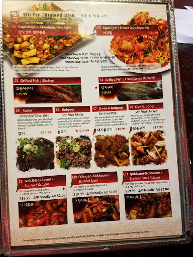 I have ordered numerous things including chicken, fish soup, seafood pancakes, kimchi soup and other Korean staples. most of these dishes I loved, a few such as the king squid are an acquired taste. beware that the fish soups are bone in The prices and customer service really make this a fantastic place to have Korean food in the west suburbs