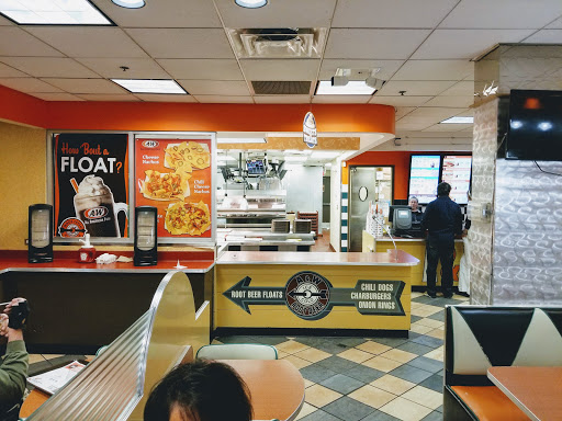 Ok, its not the best place for burgers and hot dogs, but they do have a good variety and plenty of seating inside. Its inside Woodfield Mall, so yes, its a busy place! And when we were there on a Saturday evening, the line was long but what do you expect??? For no one to be there? They could improve by having 2 cashiers versus just one. But the hot dog I had was great! The corn dog bites were done really good too and great for kids! The fries were ok. Not the best, but not that bad, because Ive had worse at other places. The interior is decorated well and they have oldie songs playing in the background. Their polar blasts are very delicious! You need to try the peppermint one. Its only available for a limited time. Overall, they are worth stopping at.