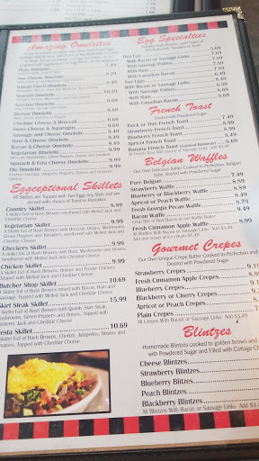 Breakfast & lunch only. Tasty options. Vegiterian, sandwiches, meals. Breakfast all day. Usual a list of breakfast specials and lunch specials. Menu offers desserts and lite choices. Decent parking. Busy on weekends. Staff nice. Older building, restrooms could use improvements. Wheelchair accessible building.