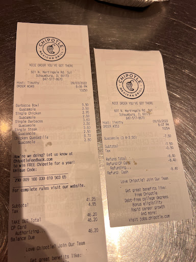 I work in the Woodfield area & there are many places I can go for lunch. Time and time again I find myself choosing Chipotle. I get a healthy, delicious, substantial meal that keeps me satisfied. The Guacamole & Chips are so good, that must be what brings me back! Always a friendly atmosphere, I highly recommend Chipotle.