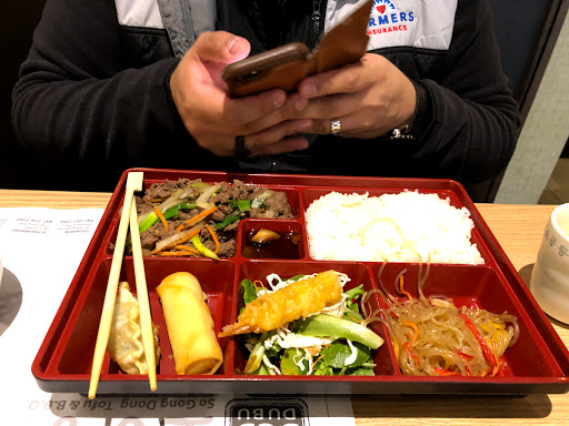 So Gong Dong is a Korean restaurant that you must try. Their menu isnt very extensive, but what they do offer is top quality! They have Korean style meats, but my go to is there soups/stews. You can pick from mild to very spicy and from tofu, kimchi, beef, or seafood to be in your soup. I mainly go with the seafood, but you cannot go wrong. Side dishes are also included (typical of Korean meals) and they always taste fresh! The staff is super friendly and are very quick--Ive never felt ignored or unattended. If you like Korean food or have been curious to try it, this place is great.