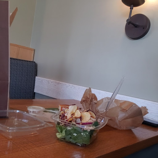 Great place to meetup with friends or studying buddies. They have free internet and the food is good. Their bakery is pretty nice - nothing outrageously good but consistent and ok. They almost always have room in the back for enjoying your lunch and doing some homework or regular work. I would recommend their soup and sandwich. Great size and pretty comforting. I am pretty sure everyone also loves their Asiago bagels - which sell out pretty quickly. Pricing is really reasonable! Great spot as long as your not watching your diet.
