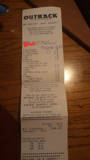 as a former employee of another outback the service and food have been below the standard of an outback steakhouse.