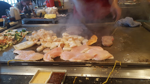 Osaka has wonderful atmosphere, friendly waitstaff, but the food was really bad. How in the world can you burn noodles? Ask our "chef" I am sure he will be happy to show you. The stench from the burnt noodles and the burning cook top was almost too much to bear. The scallops were overcooked (they were hard) and the shrimp was almost completely burnt (very black edges). If you can believe it, the soup tasted like soap. At the end the "chef" poured soapy water onto the cook top, I dont mind steam, but I do mind smelly in your face, over powering steam.