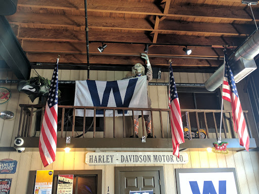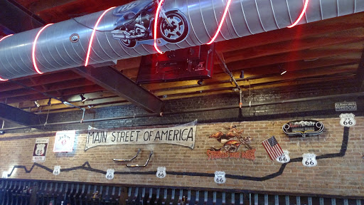 Always good service. Unique and tasty appetizers (never tried anything else). Good, cold beer. Good bloody mary bar (on Sunday I think). Ive seen it referred to in other reviews as kid friendly (which I dont really get) and as a biker bar. As for the latter, the décor is definitely biker-ish, but it has a contrived feel, more what youd expect if there was a biker bar in a shopping mall.