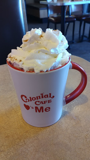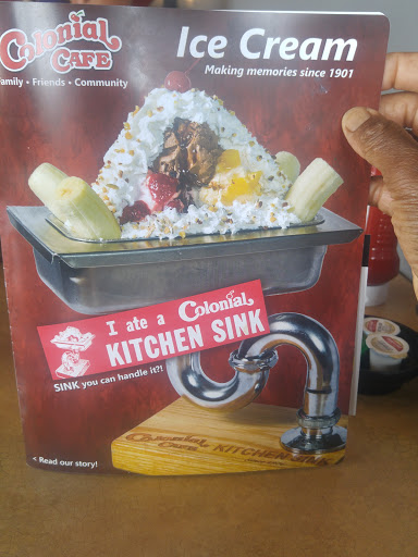 Great place if you are dinning with children. While this isnt my favorite restaurant to eat at, I do like coming here with my kids. They really enjoy the atmosphere of the restaurant, which I would describe as fun and kid oriented. They have cool color changes light all over the restaurant that my kids love to look at. They also have a good kids menu and a good variety of breakfast, lunch, and dinner for the regular menu. They are always having seasonal specials which are good (German food during Oktoberfest, Irish food around St. Patricks Day, friday fish fry during lent). I have had good food here but I would say for the most part it is a little better than your average breakfast diner. They server breakfast all day and are known for there ice cream. They have a desert ice cream dish that they are known for called the kitchen sink that is a huge pile of ice cream and ice cream related toppings that comes in a kitchen sink. There is also a bit of history behind Colonial Cafe that if you are interested in you can read up on in their menu.