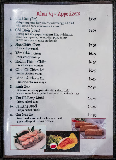 Stuff for me and always attentive. It is great and inexpensive. I really like this local restaurant because they make excellent Vietnamese food at a very good price. The menu has a nice variety!.