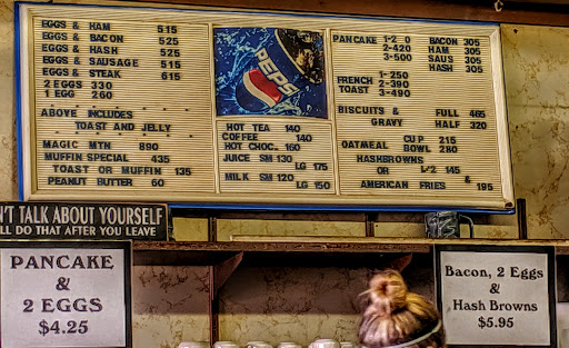 Consistently good, comfort food. Fries are great! Great, basic breakfasts from eggs to biscuits and gravy. Great table service and seating at the counter.