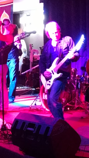 Listening to Rick Saucido in a small neighborhood bar, but the wife is happy. Decent drinks and bar pizza
