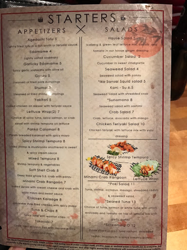 Love LOVE the new management and chef at this local sushi-spot. They have taken creative right over the edge. If you can get past blushing over some of the dishs names ;) You are in for an even sexier taste experience. My faves: From the appetizers menu: Screaming O (oh yes - it IS pretty darned close) Poki Salad From the maki menu: (ALL of them, perfect ratios: perfect texture) James Bond Crazy, and Laura-Abby Minamis Specials (I dare you to try and NOT order from here habitually.) Tasty Ex ;) yup - you WILL keep going back for more. Hell Roll Wasabi Lemon Tuna - fresh and BRIGHT, beyond what you might imagine. SUSHI SANDWICHES - OMG!!, and Summer No - I dont work, but if I did... よく食べる Yoku taberu