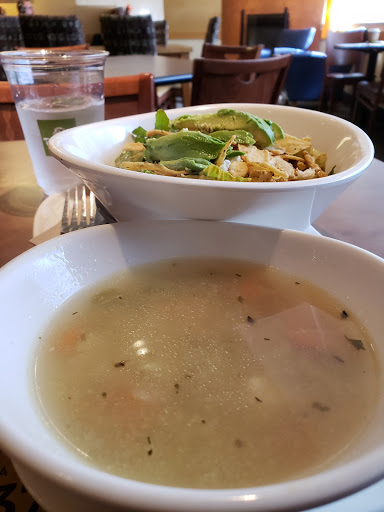 We have a group that meets here weekly, been coming for over 1.5 years. There are good weeks and not so good weeks here, depending on things like day of the week, season, staff, and other patrons. Food is always tasty, serving staff is awesome and friendly. They updated the plates and bowls recently and I am not impressed. The new bowls are deep and make it awkward to cut up salad ingredients (eg, tomato wedges or chicken slices). This past week was the 4th consecutive week I didnt receive a metal fork with my salad. Plastic forks just arent the same. I asked about a metal fork and was told the dishwasher is probably backed up. (For 4 weeks???) Oh well. One more note, the ladies restroom is usually clean but this last week there was a strong smell of urine lingering. Not sure if a dirty diaper was the culprit or not, but the room was not up to its usual standards. Overall, this Panera location perfectly suits our needs for a weekly meeting. Not too crowded, sometimes noisy (ok, WE are the ones being noisy!), managers know us and stop by to chat a moment every week.