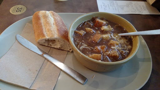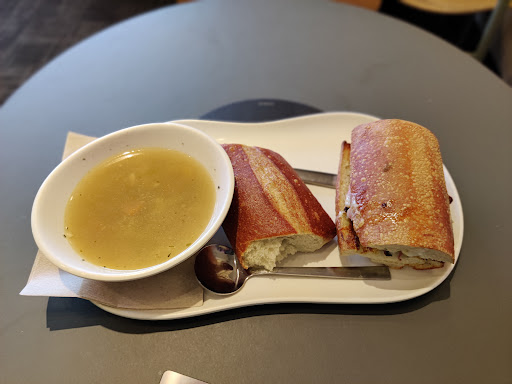 Ive had many good meals here, but this weeks visit was my last. Cashier was very slow, did not input my order correctly and took more than 5 minutes to figure out how to input my gift card as payment. I got the wrong side (wanted bread, got chips) and my moms request of no croutons on her soup was ignored. Also, apparently the makeup of the Italian sandwich has drastically changed... I had no idea there was chopped giardinera on the whole sandwich, which was way too spicy for me. The upholstered banquet we sat in looked like it hadnt been wiped down in some time. Wont go back.