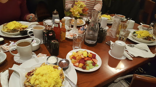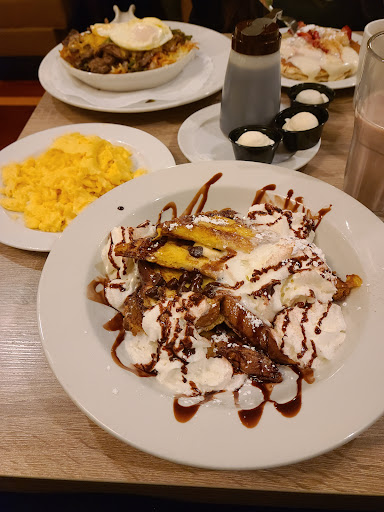 Were regulars here for at least 10 years. Portions are large, and we always leave with leftovers. We come here for the more specialized dishes that you cant get at other places. For example, we get crab cake Benedict and eggs Benedict from here. My youngest gets chocolate chip pancakes. Its pricy here but worth it due to its fancier dishes. Btw, their vanilla chai latte is heaven on Earth!