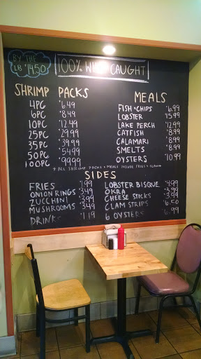 Food was great fresh and wild caught. To me that makes a huge difference in the cleanliness of the flavor. Plus, the owner was there, super hospitable. Also, the employees were well groomed, friendly, great at suggesting items and explaining everything, the place was clean, bathroom was spic and span, and the food was the tastiest Ive had from a "shrimp place" in ages. Definitely not typical and this will be the first fast food shrimp type place I will actually pay a second visit to! I had the lake perch sandwich, and my boyfriend had the jumbo shrimp. SUPER good. Lobster bisque wasnt bad either. Will be back for sure.