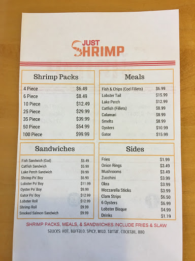 I first visited this place a little over two weeks ago by mistake! I was going to go to Portillos then saw the Just Shrimp sign and decided to go there instead. First visit i had the fried shrimp and a lobster po boy. Both were delicious!! The lady who cooked them was very nice and patiently explained the menu to me. The man who rang me up was nice and explained the sauces. I recommend the Spicy! Last Friday i went back and was nervous that the food wouldnt be as good. Boy was I wrong! I ordered the fried shrimp again and the catfish dinner. My mom enjoyed them also. The shrimp are huge and juicy and the fish was flaky inside and crispy on the outside how we like it. The nice cook was there again and recognized me! There was a younger girl ringing up customers and a blonde lady taking phone orders. Both were very nice and made small talk. I will definitely be back in a couple weeks again!! Keep up the good work and the good food guys. This is now my go-to place for my seafood fix!