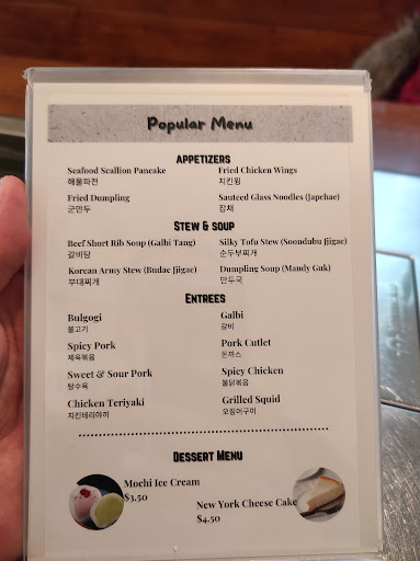 Great Korean food. nice small modern restaurant atmosphere. super friendly staff. food was delicious. New favorite for wife and I.
