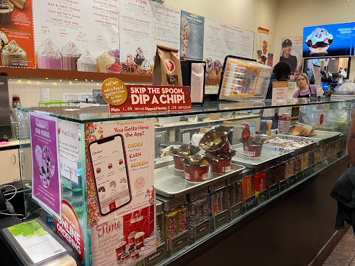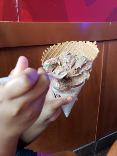 The ice cream is great, but this location is so cramped. My kids stood to eat their ice cream while 4 teenagers wirth no ice cream occupied 2 tables. When we did get a table it was dirty with dried ice cream all over it.