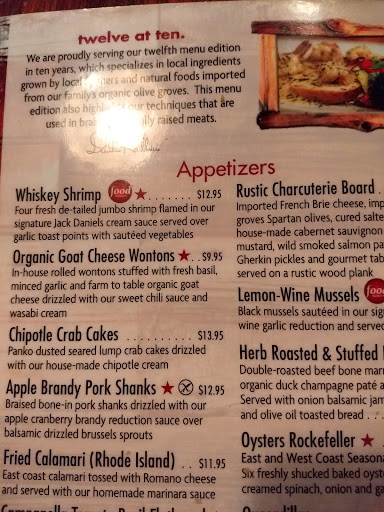 Excellent!!! We were here the Sunday after Fathers day, at 5:00 they were busy but not crowded. We ordered 4 different entrees, so we could sample them. The Apple Brandy Braised Pork Shanks were the "hands-down" favorite, tender, flavorful, fantastic. We also ordered coconut shrimp, large, tender with a flavorful sauce. Also we had Old World Chicken Spedini, delicious. Finally, we had the Shrimp and Scallop Sautee, I heartily recommend you give them a try, especially the warm bread and THE HOUSE OLIVE OIL, a real taste experience. The wait staff and hostess were very friendly, and accommodating ( a soccer team showed up with 20+ people) they were all sat and served immediately. Definitely will recommend it to everyone. ENJOY!!!