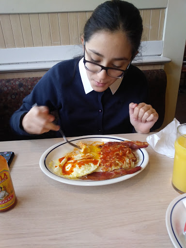 Waitress was great! Food had hair in it. Eggs were microwaved. Food was NOT good.