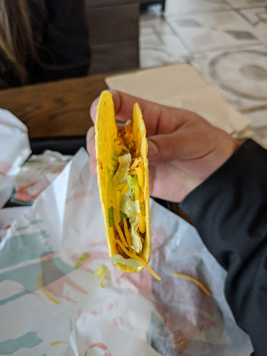 Standard taco bell, crazy cheap, decent food. The employees remember me and my friend, which is a nice surprise for a fast food place. The bathroom in this place needs a renovation, its pretty gross.
