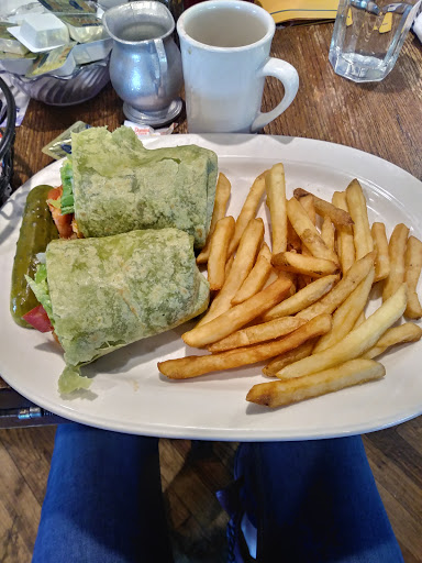 This is one of the places on our Sunday lunch rotation, coming in every couple months for some great home cooking. The restaurant is fairly clean for the amount of turnaround during their breakfast / lunch rushes. The decor is attractive and neat, and everything looks well kept. The staff is fairly friendly to very friendly - our last visit was great. Our server was attentive, helpful and friendly, making sure we had what we needed. Water is usually filled by the bus crew, though sometimes you may need to ask if its busy. The food is very good. Most dishes are done with an American flair (i.e. Mexican dishes are not authentic), though the Greek dishes are as good as any. I tried a flatbread this visit, and it was excellent. I dont remember what it was called, but it had Mediterranean ingredients. Crust was perfect, and toppings fresh. Prices are in line for the food and service. The cleanliness was decent, but could use some work. There was silverware on the floor, and my knife needed a wipe down. Otherwise, pretty good.