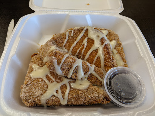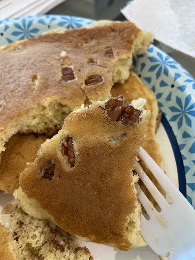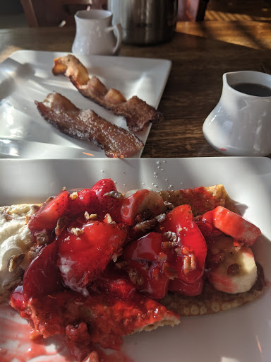 Ordered an egg breakfast which came with "special sausage". Wasnt too keen on them, tasted like a mix between kielbasa and bologna sliced and fried up. Made me queasy the rest of the day. The biscuit that came with my meal also was toasted, and over toasted (were talking blackened in spots). I did grab some bites off another plate of the crepes and they were much tastier than what I ordered, so theres potential.