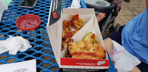 This was my first time here, and I was highly disappointed. I got the Superdawg combo and an extra side of fries with a cup of cheese. The actual hot dog was tasty minus the unripe tomato. They added a couple of extra hot peppers which was great, I feel like most places are stingy with there hot peppers. That was about the only thing I enjoyed from my 13 dollar meal. The fries where not fresh and cheese tasted like it was reheated or something. It wasnt smooth and creamy like the cup of cheese Im used to. As i finished eating my meal I was left something else.