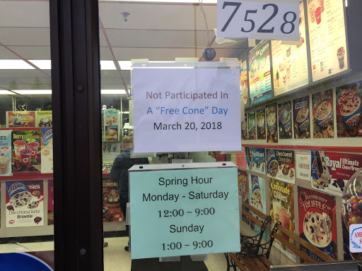 I come here a lot with my family and friends. The woman is very nice and smiles. She adds extra toppings without charge. During the summer, this place is always packed. There is opportunities for jobs during the summer, too. Many high schoolers work there during the summer. A word of advice is to ask for one ice cream and size individually. For example; "Hi, Ill like a Medium Cotton Candy Blizzard" and shell turn around and make it. Then shell ask "Would you like anything else?" and you reply with the next order. The first time I ordered I said, "Medium Butterfinger and Pumpkin Pie" and I got a Pumpkin Pie Blizzard with Butterfingers in a Medium sized cup. So, lesson learned.