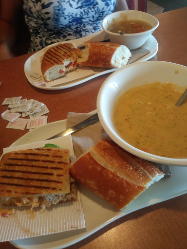 My wife had a meeting at Panera so I settled in to roam the wifi and have a snack while it was going on. Friendly staff and quick service while I waited and as always a clean and polished establishment. Parking can be tricky at this location depending on the time and day but that tends to be the case at this part of Four Corners.