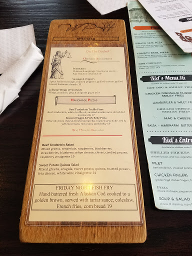 I love this place! They are in the old courthouse building now and they have jail cells where you can dine in the bar area. The food is top notch from their pizzas, to their steaks, burgers and pastas. You can enjoy outdoor dining during the summer months with a beautiful view of the scenic, Historic Woodstock Square. Keep your eye on their specials menu as it always changes. I just had fried avocado last night and it was such an amazing surprise treat, crunchy tempura batter over creamy slices of avocado with a spicy ranch dressing, although I asked for plain old ranch. Their sangrias are my favorite but werent on the menu last night. Maybe next time, because theres ALWAYS a next time. Love the owners too! They are such great hometown supporters that run a great restaurant. What a treasure for Woodstock to have!