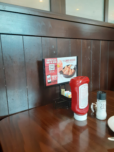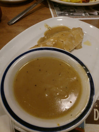 Dead flys in the window seal watery white gravy the server asked if we wanted any more bread and she kept beaching she was over seated will not go back!