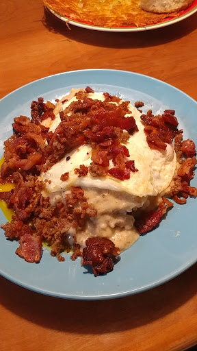 Ive ordered food from here before and it was fine. But I recently ordered the biscuits and gravy and it was horrible. It was like meat runoff mixed with flour and it was greasy and disgusting. It was honestly inedible and made me really sick. Ive never had biscuits and gravy that tasted like that. Do not order it if you actually like biscuits and gravy.