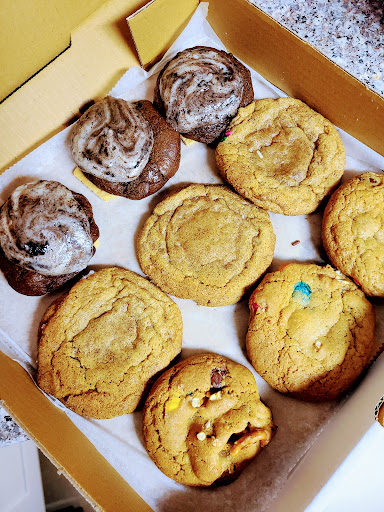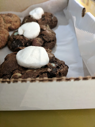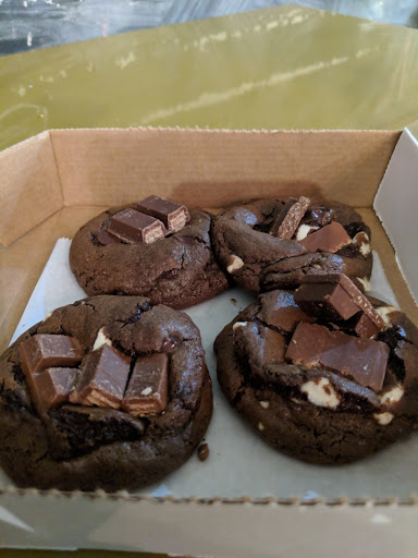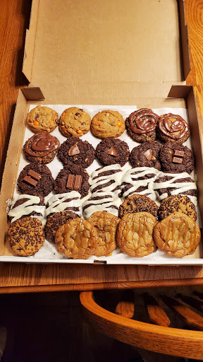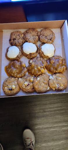 Locally owned and very good cookies. There are specials every day and the prices are reasonable considering its local. They have a huge menu and the "build your own" cookie style is awesome. I recommend chocolate dough with mint chips! Yum! (Im a cookie minimalist, though. Many people put a lot more stuff in the cookies) The environment of the shop is also great. I dont recommend delivery because it seems to be somewhat slow --about an hour-- , and I like my cookies hot out of the oven. Overall I say check out the shop, get a dozen cookies, and see for yourself :-)