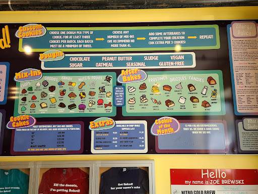 Overpriced, poor quality cookies. Youd think a cookie place would do something gourmet, but theyre more gimmick than anything. I added sprinkles to my cookies, but rather than sprinkling them on top, they completely caked all sides of the cookies in sprinkles, and it was disgusting. Theyre supposed to be a decoration, not a flavor! Youre better off getting frozen dough and popping it in the oven. Also, theyre always out of the vegan dough.