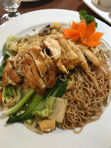The Pad Thai here was very mediocre. Chicken was dried out and sauce on the noodles tastes off. Also the noodles where very sticky. Have had pad thai in May cities across the country and never had on like this, and it wasnt a good thing. They do have a great thai tea. Full of rich flavor! Service was attentive and nice.