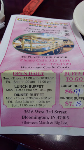 The Great Taste Buffet is a really good place to go for Chinese food. The food is really good. A nice selection of things and very reasonable prices.