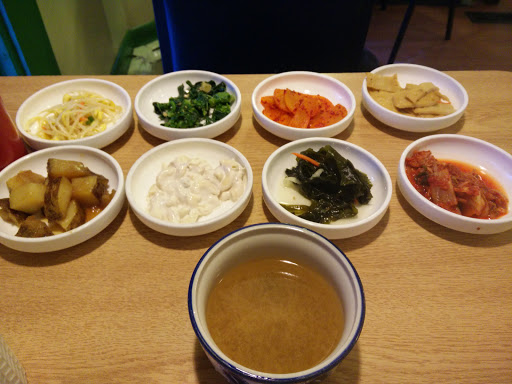 Really nice staff, and when we went there we got a whole bunch of small, free sides before the meal which was a super nice bonus. A friend of mine and I both got soup, which I wouldnt necessarily recommend if you dont know what youre getting into. Not that it wasnt good, but mine was made with pork bones (which I didnt realize until I got it) and it was difficult for me to eat without running into bone fragments. Another friend of mine got the grilled pork though, which was delicious. Basically, unless youre already familiar with korean soups, Id recommend drier dishes unless youre feeling adventurous. Otherwise, nice atmosphere, good sides, nice staff, and I definitely plan on coming here again to try more things!