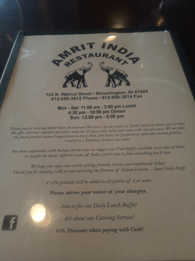 Excellent Indian buffet! Authentic! Super-fresh! Tasty! Pleasant environment with lots of windows and nice people who run the place! As good as it gets--central location in downtown Bloomington, and the price is right, too!