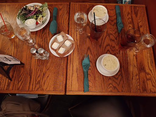 We visit Bloomington when transporting our daughter to/ from IU or visiting for a concert. We love the ambiance created by the old tin ceiling and woodwork. I personally,however, am not a fan of the stuffed deer and other animals on the wall. Our favorite item is the fish and chips- light, not greasy like some. I also love the chicken salad and the celtic salad. My husband wishes they had shepherds pie. Waiters and waitresses have always been friendly and attentive. We will definately go back!