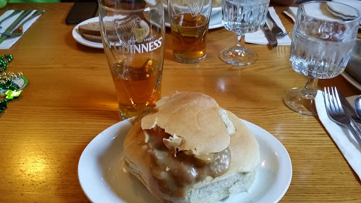 Had to be seated up stairs as one of our group was under 21. This was not bad except our server split his time between both floors. As such the service was very slow. All 4 meals were unimpressive. 2 had the over cooked lamb burger. 1 had a very dry corned beef dinner. And I had the lamb stew which was really just gravy with a few measly bits of lamb, carrot and potato. Very disappointing. The best thing was the pint of German beer. Authentic. I do not recommend this pub until they do a better job with the food. Atmosphere was good. Wont be back.